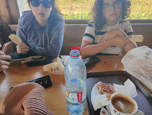 At the top station, you’ll find a fantastic viewpoint and a cute café where you can grab something to eat. When we visited, there was a group of cows grazing nearby, which really added to the charm of the place.