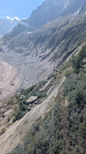 I was quite disappointed about the poor quality of the photographic exhibition at the bottom of the lower cable car station. It was quite mediocre for contextualising the glacier. Additionally the stairs down, which used to have plaques indicating how far the glacier had dropped, and in what year, now had nothing. It's as if they wanted to cover up what is happening to the glacier, like the white tarpaulins now...