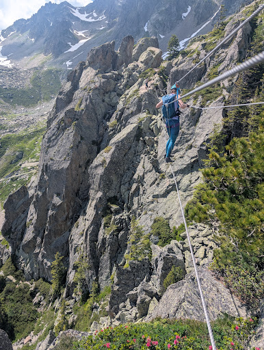 Read moreThis is a great, short and exciting Ferrata! Our 12 and 14-year-old girls did it with us and were delighted. Some steep climbs here and there, may be an exposed corner at times, but nothing felt very difficult. And the bridge is a total reward at the end! We had a great family day out. We took La Flegre cablecar up, then approx. 30 min walk to ferrata. The Ferrata itself, I would say, took us an hour, but you want to hang around the bridge and watch the different emotions of people approaching the bridge :) Some poop their pants; some take to the extreme of hanging on the rope with one hand. Anyhow - it's a super nice one! Then, another 30 minutes down to the lift. And to mention the view...