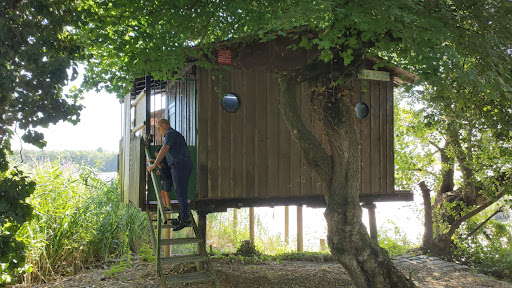 Fabuleuse expérience, notre 1ère fois! Aux premiers abords cela peut surprendre car on se gare au centre commercial pour ensuite accéder à la cabane nichée en bordure de Garonne face à l île d Arcin et là la magie opère ! On sort la table et les chaises petit apéro sur la jetée, on poursuit au parc où les enfants se défoulent puis on longe la berge pour admirer les carrelets. Quand la nuit tombe on va dîner dans un des restaurants au sein du centre commercial puis on rentre au refuge. Direction l étage pour admirer le ciel et se pelotonner dans son sac de couchage et écouter les bruits de la nuit après avoir fermé les yeux des hiboux!et au matin on se sent comme des rois, privilégiés de petit déjeuner sur la jeter face à cette forêt qui se reflètent dans l eau tandis qu au loin on entend le brouhaha de la ville. Point appréciable toilettes sèches réservées exclusivement à la cabane, point d eau et poubelle non loin . Un grand Merci pour cette expérience...