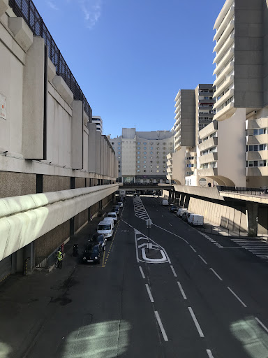 ENGLISCH Mériadeck was an everyday part of my time in Bordeaux. I arrived here on the very first day and basically passed by this area almost every day in a direct way - i.e. for running errands - or an indirect way - i.e. on the way to the city center. No district (and I am not quite sure whether Mériadeck is actually seen by residents of Bordeaux as a district in its own right) can be read so precisely in the urban space: on the eastern side from the historic city center and the town hall and on the western side from the Cimetière de la Chartreuse and the church of St. Bruno. Very precise edges. And if one walks through the surrounding streets, you get a good impression of the formerly homogeneous Bordeaux-urban-mass that had to make space for this quarter. But doesn't this area also explain what makes the center and the beige districts around it so special? Without breaks, the unity remains un-irritated. Mériadeck is primarily an administrative and business district, but residents also live here. The planning of the 60s and 70s is characterized by the idea of a car-friendly city - gigantic staircases and ramps lead to a pedestrian level +1, which connects the various building plots and levels by means of bridges. You can enter this uplifted level at one corner of the Mériadeck and walk all the way to the other side, not always entirely intuitively. But undoubtedly, Luicius Burckhardt would describe the structural expression of the Mériadeck as an “architectural cactus ”. The sheer size of the planning project reflects so many time periods that a collage-like strangeness has emerged.