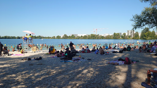 Good city beach area. Guarded, with a shower to wash the sand off your feet. Ice cream and drinks stall, first aid post and during summer holidays activities for kids. The guards are strict, no swimming allowed outside the indicated area. The lake is deep and cold, the part with the sandy beach is much warmer and of course more shallow. It can get very busy on hot days. Very multicultural population, which makes it nice to look around and see everyone enjoy the water and swimming in their way and their dresscode. Nice that a place like this exists and is supported by the city council. Bordeaux cares for its citizens. Easy to get here by bike and good bike...