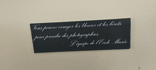Déjà je souhaite exprimer ma reconnaissance à l'équipe du musée qui, lorsqu'on laisse un message sur le répondeur, vous rappelle. C'est suffisamment rare -pour un musée- pour le souligner. C'est très amusant de retourner à l'école en été...bon, je ne peux plus m'asseoir sur les bancs: trop longues jambes🤓. Sympa la possibilité de pouvoir essayer une cape et un béret d'écolier! Il manque cependant quelques grandes tailles.