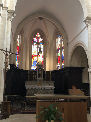 Read moreLa collégiale Notre Dame des Marais de Villefranche sur Saône, est le monument emblématique de cette ville. L' édification de cette église, débutée au 13e, a été effectuée sur une zone marécageuse longeant la rivière Morgon. Actuellement, cette petite rivière qui a été canalisée, traverse la ville, partiellement en souterrain. Vous pouvez observer celle- ci, en bout de la nef, côté nord-est. Pourquoi cette église a été construite sur la nappe phréatique du Morgon ? Avant l'édification de cette église, il n'existait pas d'église à l'intérieur des remparts. Seule existait hors les murs, l'église Ste Madeleine. Suivant une légende, une statue d'une vierge a été découverte, dans les marais de la ville, par des bergers, ces derniers décidèrent de la déposer dans l'église Ste Madeleine. Le lendemain, cette statue est à nouveau retrouvée dans ces mêmes marais. Dès lors, les échevins et l'Eglise décident l'édification d'une église dans ces marais. La nature du terrain, a bien sûr nécessité un enrochement, avant d'entreprendre la construction. il a été décidé d'utiliser les pierres plates trouvées au bord de la Saône, appelées en provençal "calades". L'utilisation de ces calades, a généré, le nom caladois, pour désigner les habitants de Villefranche. Financée essentiellement par les échevins de la ville, et un peu par les sires de Beaujeu, l'édification de cette église est réalisée entre le 13e et le 16e. Du fait de l'existence, d'un chapitre de chanoines, cette église est élevée, au 17e au rang de collégiale. Lors de votre visite, je vous informe que la Collégiale, étant en dessous du niveau de la voirie, vous serez obligés de descendre 2 marches (pour les PMR, l'accès s'effectue par une entrée située sur le côté Nord). A l'intérieur, vous serez surpris par la taille et la hauteur de cet édifice, lesquelles sont renforcées par la couleur beige clair des pierres. Je vous invite à visiter les chapelles, lesquelles sont décorées de tableaux et de superbes vitraux réalisés entre le 14e et le 16e. La copie de la petite vierge des Marais, n'est pas dans la chapelle de la Vierge, mais au dessus de l'ancien maître autel. Vous pourrez également observer le magnifique orgue comptant plus de 2000 tuyaux. A l'extérieur, je vous invite à observer, sur le latéral nord les gargouilles, dont l'une dénonce la luxure. Des visites de la Collégiale sont organisées par l'OT, lequel se situe dans la rue pratiquement, en face de ND des Marais. Alors n'hésitez pas à descendre la rue nationale, et les marches de la collégiale, pour une plongée dans l'art, l'histoire et la quiétude...Entrez vite..., vous...