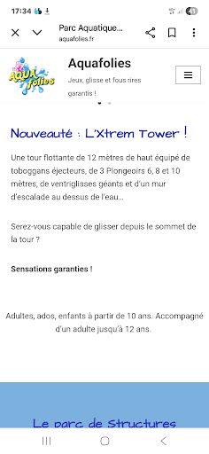 Read moreBonjour, J'ai joint la capture d'écran prise depuis votre site web, c'est marqué l'extrem tower accessible a partir de 10 ans accompagnée, donc on a fait 30min de route et payé 3 entrées a la base pour se faire refoulé car sur place on nous dit que c'est a partir de 12ans accompagnée... Merci de corriger cela Un client frustré donc un mauvais avis, même si pour l'avoir déjà fait, la tour de toboggan est vraiment bien, le parcours gonflable...