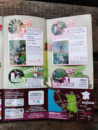Read moreSuperbe journée accrobranche! Accueil chaleureux et bienveillant, l'équipe viendra prendre de vos nouvelles tout du long de votre progression sur le parcours. Nous avons choisi le parcours "Aventure" avec de superbes tyroliennes et des transitions parfois physiques, mais toujours réalisables grâce à la longe connectée à poulie double. La fraîcheur des sous-bois permet de rester actif malgré les fortes chaleurs de l'été... Et le choix de glaces ravira tous les gourmands. Une expérience à revivre sans hésitation, peut être accompagnée d'une activité supplémentaire sur place (lazer game par exemple).