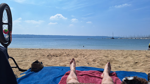 ... we are so lucky to have a huge clean beach like this just on the edge of town, nice for swimming as the bay is sheltered, and of course for sunbathing. There are cafe's and bars just nearby for an ice-creme or a beer if you are so inclined ... spot for...