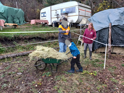 De 7 à 67 ans : grands parents et petits enfants se retrouvent le temps d’une soirée, pour entrer dans le quotidien de la ferme avec l’activité ‘fermier d’un soir’ Merci Julie de nous avoir si gentiment accueillis et fait partager votre travail. Bottes aux pieds nous allons pendant près de 2 heures (patauger dans la boue et) participer à la préparation des repas et au nourrissage des différents pensionnaires. Bonjour, poules, lapins, béliers, boucs, cochons, ânes…. Non ce n’est pas un rêve ! Petits et grands se prennent au jeu et participent aux côtés de la fermière à charrier foin dans la brouette et eau dans des bidons, à préparer les gamelles (on ne donnera pas la recette, mais… une petite gâterie très appréciée par les animaux) Accaparés par notre travail et attentifs à toutes les informations données, nous n’avons pas vu passer le temps et c’est à la nuit tombée que nous quittons les lieux, la tête remplie des souvenirs de ces bons moments passés en votre compagnie. Une bien belle activité qui à n’en pas douter ravira...
