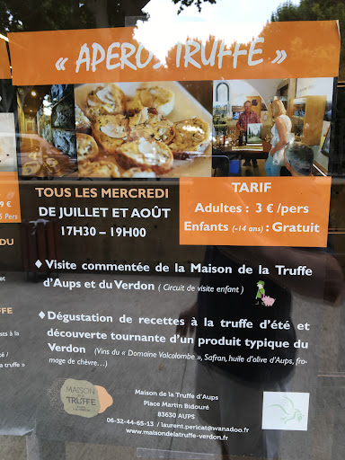 Animateur non présent les weekends, pas compréhensible avec un magnifique marché rempli de touristes, donc avec de l'argent pour de la vente le samedi !!!! Heureusement personne de l'Office du tourisme souriante qui a prit le temps de s'occuper de nous malgré le nombre de touristes qu'elle avait a gérer Peut-être penser à mettre la maison de la truffe à un autre endroit indépendant et avec une personne présente pour les touristes. Déçu également de trouver certains produits avec mentionné truffes du Périgord en étant capitale de la truffe à Aups pas très logique et...