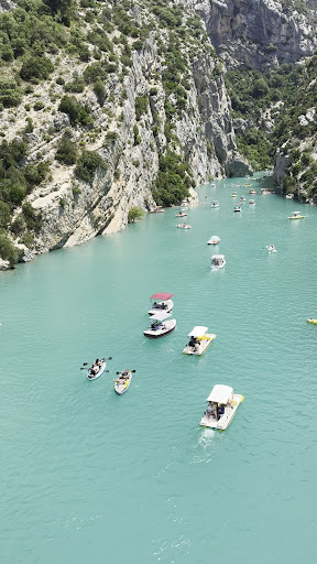 We rented a small boat right next to the bridge and cruised into the Gorges du Verdon. It was one of the most peaceful, awe-inspiring experiences of our trip. The cliffs rise dramatically on both sides, and the color of the water becomes even more vivid as you move deeper into the canyon.