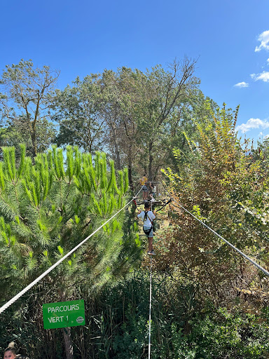 Read moreUne expérience vraiment décevante. Nous avons été accueillis par une dame très agréable, il en est de même pour le moniteur aux cheveux longs qui nous a équipés et fait le briefing de sécurité! Nous avons certainement eu de la chance en arrivant! Les autres membres du parc ont dû laisser leurs sourires à la maison, certainement sous prétexte qu’on est en fin de saison et qu’ils en ont marre des touristes mais c’est pourtant grâce à nous que votre boutique tourne… Les deux étoiles ne sont que pour le lieu et l’infrastructure. De gros bémols concernant les mousquetons : Les mousquetons sont en effet assez sécurisés, un reste toujours accroché mais vraiment compliqués à manipuler. Je comprends la volonté du parc et de cette activité en général de renforcer la sécurité lorsque l'on est en hauteur, mais ce système n’est pas intuitif et il arrive parfois que la poulie reste bloquée ! Nous avons passés plus de temps à essayer de comprendre où mettre ses mousquetons que de prendre du plaisir à progresser sur le parcours. Les parcours : Les couleurs ne sont pas significatives du tout du niveau de difficulté ! Et je ne parle même pas du filet d'arrivée de la tyrolienne de fin de parcours où je suis restée coincée car impossibilité de détacher ma poulie. Et même en montant tout au dessus du filet, je n'ai jamais réussi à le détacher seule. Ah oui, je remercie le gentil moniteur qui passait en dessous de la tyrolienne a ce moment là, qui a clairement vu que j’étais bloquée mais qui a tourner la tête pour ne pas venir m’aider ! Nous avons vu 3 moniteurs sur les 2h où nous sommes restés au parc, alors certes c’est certainement parce que nous sommes en fin de saison mais il faut penser à ceux qui viennent en vacances plus tard … 3 moniteurs pour le monde qu’il y avait c’est trop peu ou alors il faut limiter le nombre d’entrées ! Au moment de retirer le baudrier j’avais la cuisse en sang, le moniteur ne s’est même pas inquiété et ne nous a même pas demander notre ressenti. Il avait peut être peur de notre réponse. Une après midi gâchée pour le prix que nous avons payé ! Nous ne reviendrons pas ça...