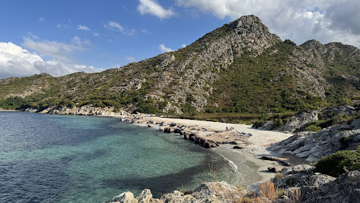 Read moreEravamo alla ricerca di una spiaggia riparata dalle forti folate di libeccio di questi primi giorni d'agosto. Ho pensato che questa spiaggetta, trovata sulla mappa, potesse fare al caso nostro. Non facilissima da raggiungere (circa 40 minuti di camminata dopo aver parcheggiato l'automobile), ma la vista all'arrivo é stata impagabile. Spiaggia completamente deserta in altissima stagione. Certo, il vento forte si sentiva, ma per lo meno non c'erano onde che rendessero la balneazione impraticabile....