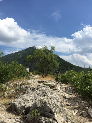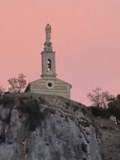 In September 2024, we happened to pass through Castellane, coming from Lyon on our way to Tuscany. I programmed Google Maps to make the route toll-free, precisely to pass through the inland towns. We saw this church a few kilometers from the top of another mountain where the road passes. The town is located in the Verdon Regional Natural Park and is a starting point for hiking, rafting, and canoeing in the gorges of the Verdon River, which form the largest canyon in Europe. It's a small but bustling town, with several bars and restaurants. We considered staying overnight, but all the hotels were full. We planned to return to climb up to the church. Returning from Tuscany, we kept our promise to return and climb up to the church. It's a moderately difficult hike. From the top of the cliff, you can see the town and the river, along with a vast horizon.