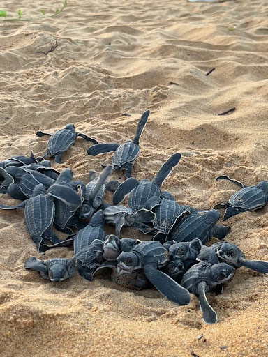 Nous sommes arrivés le matin vers 6h30 pour éventuellement pouvoir assister à une émergence de bébé tortues luth et nous avons eu la chance de les trouver en train d’émerger du sable et se diriger vers l’océan pour un long voyage, la présence d’une dame d’une association de protection de tortues a rendu l’expérience encore meilleure car elle nous a expliqué ce pourquoi il ne fallait pas aider les bebe tortues quand elles galéraient (elles développent leurs muscles du nid jusqu’à l’océan et les aider en le portant jusqu’à l’eau les handicaperaient plus tard dans l’eau.) tout le monde a été respectueux et notre présence a probablement fait fuir les oiseaux ce qui a permis à tout le groupe de se rendre à la mer sain et sauf. Ce fut une...