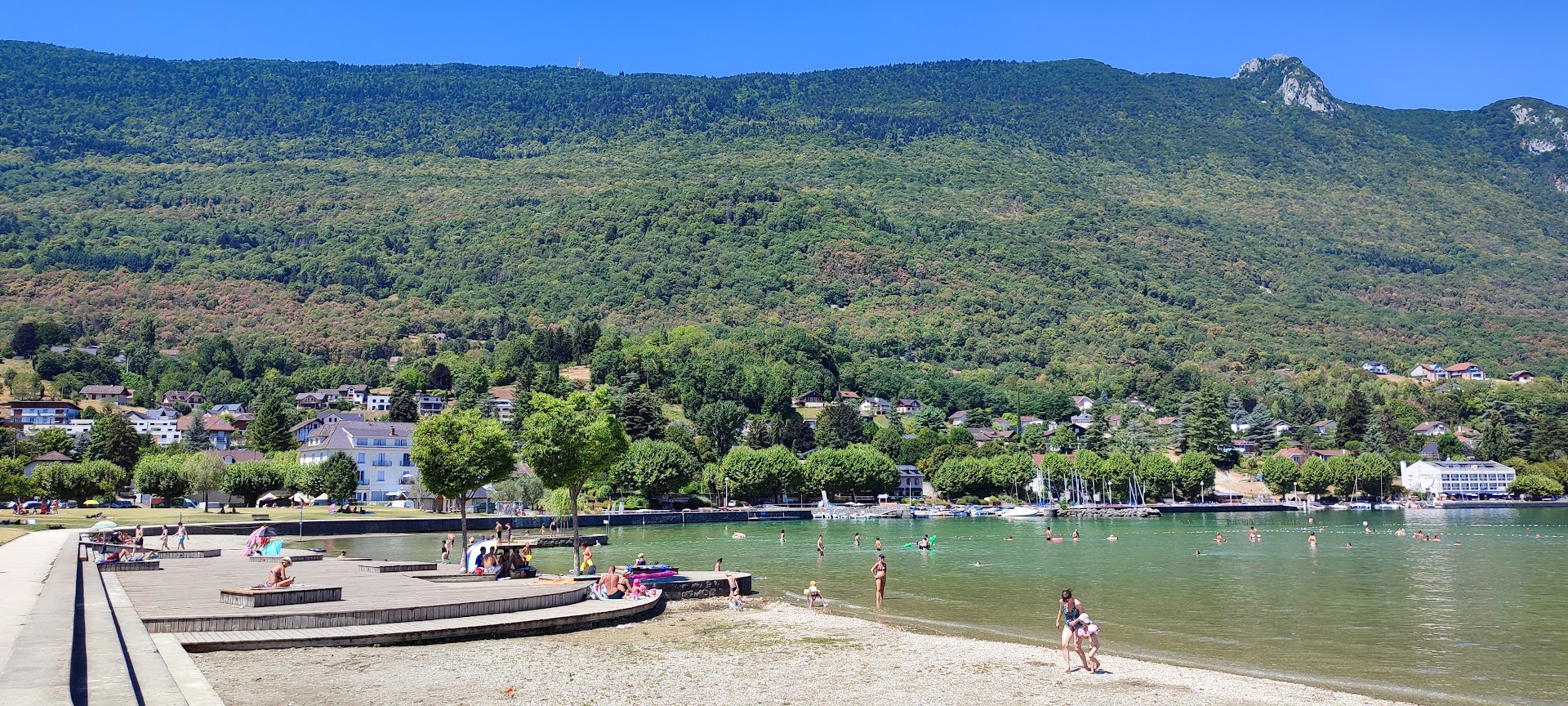 Read moreSpent a very happy couple of mornings here swimming from the pier and enjoying the lake and the views. Not many places offer clean, easy swimming with the foothills of the alps in the background! Charges around 3 Euros per person for entry, but there are toilets, lifeguards a nice long pier to jump in the water as well as grassy areas and some benches to sit on. Huge car park close by - 1 euro per hour charge for this. Mornings were nice and quiet - got busier as the day went on so could be a bit crowded by the end of...