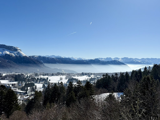Belle vue par endroits. Fraîcheur appréciable l'été. Splendides arbres alentour. Superbes descentes à vélo sur Chambéry ou Aix à partir de là.