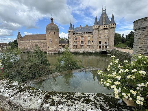 Read moreGrosse masse imposante et stupéfiante comme posée sur l'eau, au détour d'une route de campagne. Plutôt austère avec des ajouts néogothiques du 19 ieme. Intéressant comme témoin de l'architecture médiévale certes, mais on ne peut pas dire que c'est un joli château. Son aspect rébarbatif ne donnerait pas envie d'y vivre. Comme on était passé devant le soir à la tombée du jour on est revenu le lendemain pour l'examiner de plus près. A Clayette, il n'y a pas grand chose à faire, il y a un office du tourisme (!) avec 2 dames au comptoir: on se demande à quoi elles sont payées: si vous leur posez une question elles vous emmènent vers leur présentoir à prospectus. Sinon 4 pots de confiture et des savons à vendre sur des étagères...la belle pièce d'eau qui entoure ce sinistre château pourrait être habilement exploitée par la commune. La campagne environnante...