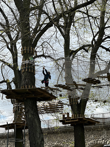 Read moreUne activité peu commune en ville. Ces parcours situés en plein centre dans le parc André Gagnon sont très bien conçus. Trois niveaux de difficulté sont proposés (vert, bleu et noir par ordre de difficulté croissante). Le dernier parcours passe même au-dessus du boulevard et est assez impressionnant avec sa longue tyrolienne survolant la roseraie. L'accueil et l'encadrement se font avec le sourire. La séance peut se clore par un petit goûter à la buvette des écureuils proposant des boissons fraîches et des gaufres. Une activité pour passer un bon...