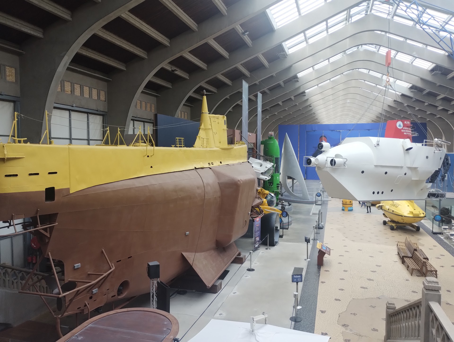 It is located in the mighty halls of the former transatlantic port station. The Art Deco style halls were inaugurated on July 30, 1933. The building was blown up by the German associations on June 23, 1944 shortly after the Allies landed in Normandy, then reconstructed and inaugurated again in 1952. Actually, the transatlantic port station, with its wonderfully reconstructed wooden terminal, has not been used for over 70 years, except in exceptional historical cases, e.g. when the Queen Mary 2 calls at Cherbourg. Various submarines and diving boats from different decades can be seen right in the entrance hall. After paying the admission fee of almost € 20, you can continue inside to a highlight for me: the atomic submarine Le Redoutable S611 is docked here. The boat was equipped with nuclear missiles, initially with 500Kt, later with 1.2M explosive force. That's the explosive force of Hiroshima a few hundred times, which was just as common in the Cold War. One thing stands out in comparison to all the diesel submarines that I have already visited: the nuclear drive is the paradise for submarine designers, because it promises abundant energy for propulsion, water and air treatment, comfort and space on board. The reactor produced enough energy to power a city of 100,000 people like Cherbourg. Fortunately, none of it was used and the deterrent did its job. The other major exhibition is about the Titanic. How do you think the Titanic has been recovered and will be exhibited in Cherbourg? No, she docked here in Cherbourg in 1912 on her maiden voyage and took on other passengers before her encounter with the iceberg. An entire museum department is being constructed here from this historical stopover. The exhibition presented here is modern, multimedia, interactive, with films, animations, deck and cabin replicas and individual fates. What she is missing, however, are artifacts! There are only 3 small showcases with objects, everything else is on the ocean floor. All of the rest of what is shown here is multimedia-based information, but it is generally available and known. So here is a complete contrast to the original submarine Le Redoutable, which you can walk, touch and see. The third section of the Cité de la mer deals with marine research. Keywords: origin of life, deep sea exploration, wrecks, special living beings. Here you can finally marvel at fish, seahorses, jellyfish and other things live in...