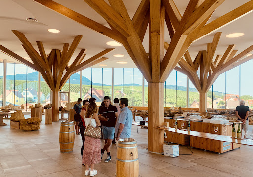Le domaine a également pensé aux familles, avec un espace parfaitement adapté pour les enfants afin que les parents puissent profiter pleinement de la dégustation. Quant au bâtiment, certes imposant, il séduit par sa modernité et surtout par la vue panoramique exceptionnelle qu’il offre sur les vignes et la Route des Vins.