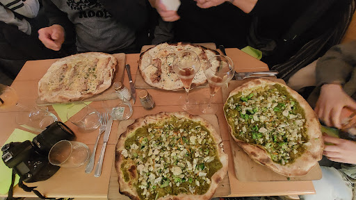 We went to "La Cour des Anges" on a saturday afternoon, during the X-mas period. It's probably the busiest period, so get ready to be waiting a bit before getting seated. However, it is well worth it. We have been welcomed by the chef de salle, a loud, energetic, and friendly man. The restaurant is small, cute, and lively; a bit of Italian style. We liked it! We took 4 "tartes flambées"; 2 standards & 2 vegans. All were great: it was the best of the one we have tried in Alsace. There was a lot of effort in the vegan ones as well. Top notch! The restaurant offers many deserts made by a local artisan in Colmar. Those were fabulous. We highly recommend this place. The food was great, and the service was fast and friendly and venue charming. Price wise, it seemed very reasonable and completely worth the experience.