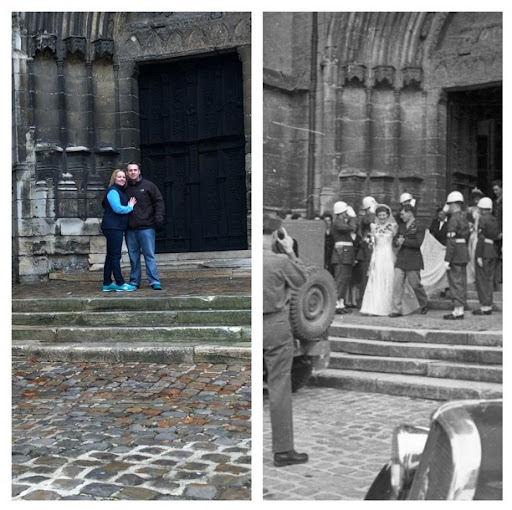 This Church holds a special place in my heart— my Grandparents married here in June ‘45. They were both Americans serving in the European Theater. My grandmother used to tell me story upon story about this church. After she died in 2011, I always told myself I wanted to see the church. While in Europe, my family visited Disney Paris and we snuck away for a few hours to find the church… below is a pic of my wife and near the same spot as my grandparents.