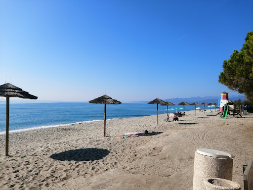 Read moreWir haben eine tolle Zeit hier verbracht. Es wird relativ schnell tief. Kleine Kinder können vielleicht einen us 2 Meter noch stehen. Nach 5-6 Metern ist auf jedenfall auch für Erwachsene schwimmen angesagt. Bis zur vorgelagerten Sandbank schwimmt man vieleicht 30 m. Unter den Pinienbäumen ist ganztags Schatten zu finden. Leider lagen bei uns ziemlich viele Piniennadeln und weit und breit keine Gartenboys, die mal fegen. Das fanden wir sehr schade. Ansonsten ist dwe strand auch echt naturbelassen. Viel Treibholz... Sand ist grob, auf der Sandbank allerdings super fein. Der Souvenir- und Klamottenverkäufer hatte die Pinien mit seinen Waren dekoriert. War auch nicht aufdringlich. Der hatte am 1.7. seinen...
