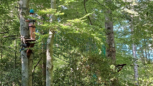 Best Climbing Park in Corse. It's exiting to climb over bridges, ropes, nets and drive with a pulley on many ropes from tree to tree. All that fun in an impressive old forest crossed by a small river where you can swim in. Price for adults is about 25 EUR for 4 hours. If you're a monkey, you can manage to finish 12 routes in 4 hours, we finally made it. Even on a sunday it was not crowdy and...