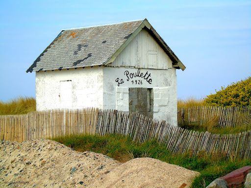 Read moreLa poulette est une petite cabine de plage qui se situe au bout de la digue à Agon-Coutainville. Posée dans les dunes,elle est l’un des vestiges de l’époque des cabines de bain et des bains de mer. Sauvée moultes fois des assauts de la mer,elle fut bâtie en 1926 et depuis,fait partie des incontournables de la station balnéaire,vacanciers,promeneurs, photographes,peintres...tous se retrouvent ici à un moment ou à un autre,pour admirer le paysage,prendre des photos,et s’inspirer des lieux. Située en première ligne,elle affronte les éléments,les saisons et surtout les tempêtes années après années,elle a fait preuve d'une résilience exceptionnelle,pendant prés d'un siècle,et elle se dresse encore fièrement sur la plage. Elle demeure ici,seule,ultime vestige de plusieurs autres cabanes et maisons qui trônaient là pour accueillir les familles pour les vacances,mais la Poulette est devenue un élément du patrimoine,de la station balnéaire...