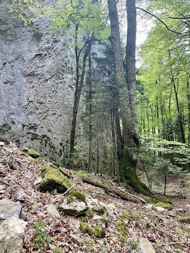 English: Fascinating hiking area in a large oval nature reserve, which is surrounded almost all around by a high rugged mountain range. The result is a rocky basin with a subtropical climate inside. Numerous hiking trails make it possible to explore the area at all altitudes up to the steep cliffs that drop vertically outwards. From up there, one has fantastic views far beyond the lower surroundings of the Forêt du Saou, but of course also completely into the interior of the rocky basin.