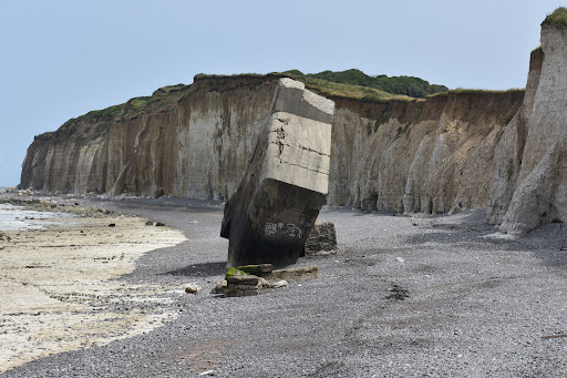 You don't see a bunker that slid off a cliff that often so it's worth to come here and have a look. You can park on top of the cliff on a small parking. There's no sign of the bunker, just a parking spot. Then you can walk down to the beach and follow it to the bunker. Make sure the tide doesn't surprise you as...