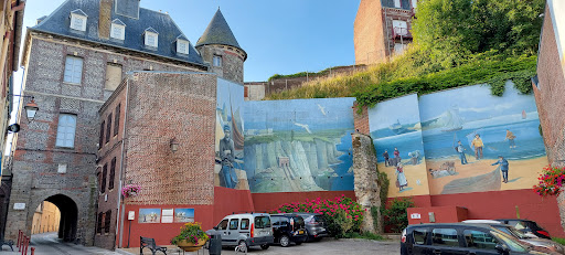 Read moreUne grande barre d'immeubles confisque le front de mer, tandis qu'à l'arrière, nous avons découvert de multiples rues parallèles, bordées de petites maisons simples, parfois ponctuées de bow-windows ou à balcons en fer forgé. Originairement, les cordiers, marins pauvres qui à défaut de pouvoir s'offrir des filets, pêchaient au moyen de cordes garnies d'hamecons. Ils furent les 1ers habitants de ce quartier, resté populaire, loti sur une surface gagnée sur la mer. En remontant vers l'église Saint Jacques, nous sommes parvenus à l'ancien hôtel de ville, qui abrite le Musée du Vieux Treport, avec sa voûte du XVIe siècle et sa tourelle du XIIIe. Au passage, nous avons remarqué une grande fresque illustrant...