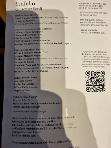 Read moreRien à redire sur le spectacle et l organisation, tout est toujours OK et les spectacles beaux et intéressants. Cependant, un spectateur était ivre et à semble-t-il dérangé qqs personnes au 1er rang, personnellement je ne l ai pas entendu du tout. J ai par contre très bien entendu son fils, de 10 ans à peine, hurler et pleurer lorsque les hommes en noir de l opera sont venus sortir cet homme par la force, sans avoir d abord essayer de lui demander de se calmer un peu. Les cris de l enfant m ont soulevé le cœur et voir cela m a totalement gâché le spectacle. Un spectacle qui parlait de la noblesse de l art et de la danse.. Bien sûr cet homme n avait pas à être ivre, mais était il vraiment nécessaire de faire subir cela à un jeune garçon qui ne comprenant pas ce qu il se passait? Combien de temps restera t il traumatisé de cette soirée? Honteux! A vomir! Pas sur d avoir envie de redonner mon argent (surtout vu le prix des places,réservées à la bourgeoisie bien pensante dijonnaise) à des personnes ayant des pratiques d un autre âge. La culture devrait être plus abordable et plus tolérante. J ai honte pour vous messieurs les...