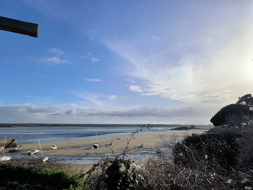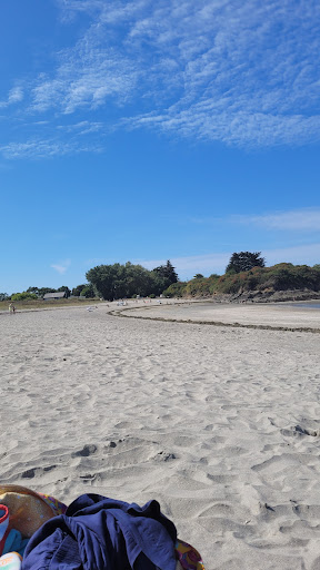 Parking d'une quinzaine de places juste devant la plage, pas de marche à prévoir, et il y a un tapis à l'entrée de la plage, peut être cela est-il plus facile pour les personnes à mobilité réduite. Il y a aussi une cabine pour se changer à l'entrée de la plage. A marée basse, la mer se retire vraiment très très loin. On peut marcher dans la baie, et il y a des réserves d'eau à certains endroits, sympa pour tremper les pieds et les enfants. Des rochers encadrent la plage, les enfants adorent y grimper et chercher des trucs vivants dans...