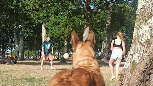 La plage a une partie sable une partie herbue avec des arbres qui nous permettent d'être à l'ombre ⛱️ donc pas besoin de parasol. Pour les 👩🦼👩🏼🦽, il est possible d'accéder au jord du lac côté embarcations en roulant un peu dans l'herbe mais si vous voulez vraiment accéder à l'eau il faudra de l'huile de coude, comme souvent. Mais la partie sable est assez courte, c'est surtout de l'herbe à traverser donc courage 💪