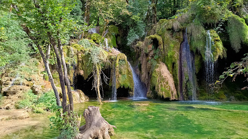 magnifique balade à faire en famille, il y à plusieurs itinéraire pour accéder à la cascade et au cours d’eau donc les marcheurs peuvent prendre les sentier et les poussettes suivre le chemin bétonné et après le chemin dans la forêt. Nous avons prit la boucle dans le sens inverse (partir à droite en sortant du parking de l’église ) et on en a prit pleins les yeux du début à la fin. en ce mois d’août le chemin est très bien, racines et cailloux normal pour un chemin naturel. très ombragé aussi. ensuite nous avons suivi les recommandations ne pas prendre à droite au premier petit pont métallique (très escarpé jusqu’à la source). nous avons donc prit le chemin de la cascade principale, et waouuu effet garantie et un bon coup de fraîcheur. nous avons suivi les panneaux de la petite source pour monter au dessus de la cascade. nous avons quitté le sentier pour suivre le cours d’eau, c’est juste magnifique. nous sommes monter jusqu’au second pont métallique pour voir le bassin de la source, et nous sommes redescendus par le même chemin. nos 2 ados et notre presque 7 ans ont adoré. nous avons manger a l’ombre au dessus de la cascade. pour les points négatifs il y a aucune poubelle et pas de sanitaire dans...