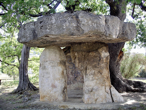 Read moreEl dolmen más importante de Provenza sería una sepultura colectiva levantada en el Calcolítico, o Edad del Bronce, en el tercer milenio antes de Cristo. La «mesa», la losa superior, pesa más de 20 toneladas. Su nombre proviene de una leyenda que liga la construcción a los amores del hada Esterelle con un joven genio al que, para casarse con él, exigió que le construyese el monumento. El genio fue capaz de llevar las tres losas que sostendrían la mesa, pero no está última, que fue puesta por el hada. Frustrado por no haber podido hacerlo, el genio moriría de pena. Por otra parte, al dolmen se le atribuyó la capacidad de hacer fértiles a las mujeres sin hijos, que acudirían allí para poder tenerlos. En un entorno rural y bajo un roble centenario, la Piedra del Hada –Peiro de la Fado, en provenzal– es un bonito lugar que...