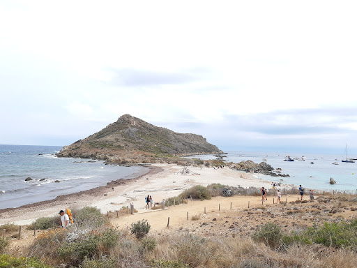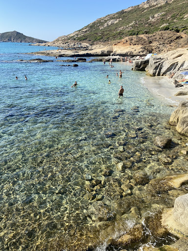 We traversed this beach while hiking to Cap Taillat. We did not stop to sun and swim because although the water looked really nice, the sand did not look that great. Lots of natural sea debris and rocks. We opted instead to swim upon returning to E’Scalet where we had parked our car. There were quite a few people there, but not so many as to say it was crowded. There is a sign indicating it is a naturist zone, but almost all were attired in bathing suits. Given that the beach has two sides, most days at least one of them will have fewer waves and be better for swimming. There is a long row of natural rock on the south side that also serves as a breakwater of sorts, and there was at least one guy (this one bare) swimming the length of what appeared to be...