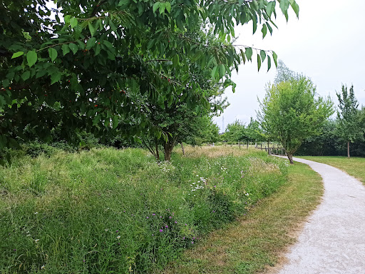 Très agréable découverte que ce parc. Un écrin de verdure en plein centre ville avec beaucoup d'espace et différents chemins de balade. Plusieurs aires de jeux pour les tout-petits et les ados. Appareils de sport en plein air (certains nécessitent réparation). Beaucoup de végétation, des beaux arbres, des séquoias qui ont été taillés et sculptés. Une boîte à livres. Un petit potager. Mais surtout, pour le bonheur des enfants, deux ânes en enclos et des poules et coqs libres dans le parc. Quelques tables de picnic sont à disposition. Il y a également des arbres fruitiers. Des petits ponts et des points d'eau avec un côté sauvage style jardin anglais très joli. C'est vraiment une très...