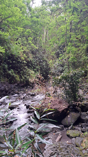 L'accès au parking et donc au site est réglementé, il faut chercher un laissez-passer à la mairie de Papeete. Le tarif est de 600 XFP pour un adulte mais c'est gratuit pour les moins de 12 ans. La 1ère heure de marche est relativement facile puisque l'on emprunte le chemin d'accès aux différents ouvrages hydrauliques de la compagnie des eaux. Ce chemin étant utilisé par leurs voitures, il est large et constitué de graviers. Après cette heure de marche, il y a un pont qui offre deux possibilités soit de voir la cascade depuis en haut dans ce cas le dénivelé est de 400m en 3h de marche. Soit le chemin que j'ai choisi amenant au bas de la cascade annoncé pour 2h de marche et 40m de dénivelé. Le temps est correct mais il ne faut pas se fier à la description du terrain faite sur le site internet de la mairie de Papeete. C'est très difficile, ce n'est pas un chemin mais une navigation entre les racines, les pierres, les arbres et arbustes, les parties gadoueuses. Il y a trois passages de la rivière avec de l'eau au dessus du genou (passage en juin) qui sont très glissant du fait de la présence de pierres lisses dans l'eau. Une dizaine de minutes après le 2ème passage, il faut utiliser un escalier dont la 1ère marche est à 1m20 du sol. Après tous ces efforts, la fin du parcours comprend une descente sur un terrain boueux très glissant, attention aux chutes !! Arrivée à la cascade qui en toute honnêteté ne vaut pas tous ces efforts. 6h de marche aller retour, 12km : deux chutes Parcours pour...