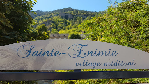 info source de Burle, dite miraculeuse, est au coeur de la légende de sainte Enimie. Selon elle, la jeune princesse mérovingienne, atteinte de la lèpre,s'y baigna par trois fois. fut guérie et comprit que son sort était lie aux rives du Tarn. Elle s'installa et fonda un petit moutier (monastère) d'hommes et de femmes. La source de Burle prend ainsi une importance capitale dans le developpement du monastère et du lieu-dit Burlatis, aujourd hui Sainte. Énimie Chargée en sels de cuivre qui lui donne cette couleur bleue si particuliere, la vertu principale de cette eau est de soigner les maladies de peau des gens et des bêtes (teigne en particulier) elon la tradition, un simple linge imbibé de l'eau de Burle suffirait à soulager l'eczéma et autres dermatites. De type vauclusienne , la source jaillissait pendant les crues, formant alors de gros remous. En 1934, un système de captage a été installé afin de fournir ie village en eau potable. De nos jours, aucun géologue n'a pu focaliser T'origine exacte de la source, mais des speléologues ont découvert un aven, quarante- cinq metres en dessous du niveau du Tarn. Cependant, son volume d'eau dépend peu de la pluviométrie du causse. fa clarté du bassin est trompeuse. La profondeur en son centre atteint en réalité 6 à 7 metres. C'est une des plus importantes Burle source, which is said to have miraculous powers, is at the heart résurgences alimentant le Tarn. of the legend of saint Enimie. It says that the young Merovingian princess, who suffered from leprosy, bathed there three times and was healed. Seeing this she understood that her fate was connected to that According to tradition, a piece of cloth soaked in the waters of the Burle of the banks of the Tarn and founded a small monastery there, for men Source is enough to sooth eczema and other forms of dermatitis. Burle source was therefore of utmost importance to the development of This "Vauclusian" source gushes forth during rises in the water level the monastery and the place named Burlatis, now called Sainte-Enimie. forming great eddies. In 1934, a hawnessing system was set up to supply the village. in drinking water. Its very high copper salt content gives it its particular blue colour and the main property of the water is that it heals skin diseases in men and To date, geologists have not been able to locate the exact origin of the source oit speleologists have discovered a sinkhole forty-five metres animals (ringworm in particular). beneath the level of the river Tarn. Its water volume however depends on the pluviometry on the limestone plateau. The clearness of water in the basin is deceptive: it is 6 to 7 metres deep in the centre and one of the largest resurgences to...
