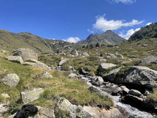 Magnífica ruta de unos 8km desde el centro de información del Valle d'Incles, con un par de subidas importantes que serán duras sino tienes mucha experiencia en montaña, no porque el camino sea difícil sino por la pendiente. Aunque si te detienes en algunos puntos espectaculares a mojarte los pies, descansar y disfrutar del entorno, se te hará más liviano. Ten cuidado con los tábanos o moscas negras, porque si eres de sus humanos favoritos como yo (que además me provoca reacción alérgica), mejor que lleves repelente y ni se te ocurra llevar ropa oscura. Si al final te pican, trata de no rascarte y soportar la picazón, porque como te rasques será peor y tendrás un recuerdo por varios días. Si tienes perro, es un paraíso para ellos. Mi Lobo 🐺 blanco disfrutó como un cachorro y eso que pronto cumplirá 7 años. Lo mejor está al llegar a la cima... Cuando ves el hermoso estanque ves que aún hay un buen trecho si quieres disfrutarlo, unos 25 minutos más, pero vale la pena. Como única pega nos encontramos un grupo de personas que se había "apoderado" de toda una zona con carpa incluida y que a la hora de comer su picnic (tuppers con una salsa de tomate) no dudaron en lavar sus tuppers en el agua limpia, cristalina y espectacular que todos estábamos...