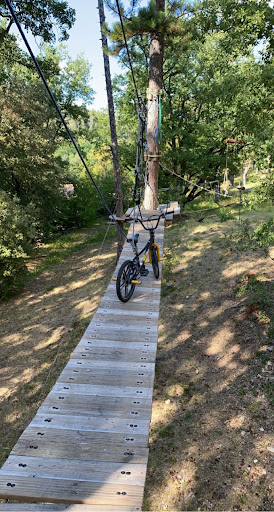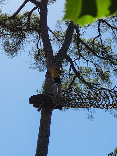 Read moreLe parc est pas mal. On a pas de ligne de vie dans les parcours, juste 2 mousquetons qu'on enlève à chaque fin d'activité, mais c'est quand même sécurisé parce qu'ils ne peuvent pas s'enlever en même temps. Au début c'est chiant à comprendre et on doit vérifier à chaque atelier qu'ils se sont bien mis, mais ça permet de faire des trucs comme les sauts de tarzan beaucoup plus facilement qu'avec une ligne de vie.