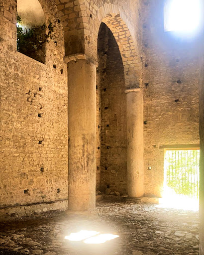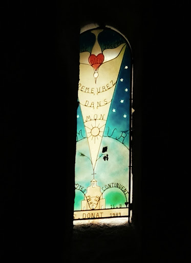 Jolie chapelle mais toute fermée pour des risques d'éboulement. Ça vaut quand même le coup de s'arrêter pour se mettre à l'ombre des vieilles pierres et en faire le tour en jetant un œil curieux a l'intérieur. Les pigeons y ont...