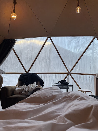 Read moreMon conjoint nous a réservé une "chambre" pour une nuit. Hors saison et le prix n'est pas du tout correct. Il est très élevé pour ce que c'est. En effet 350 euros hors saison., tout était fermé aux alentours. On nous dit 10 min à pied il y a un resto partenaire... Comptez plutôt 20 min en y allant et au moins 30 min minimum en remontant.. Mais bon. Au delà de ça, la propreté n'était pas au rdv. Tâche jaune sur la housse de couette et le drap. Sûrement lavé mais à ce prix là on change les draps si ceux ci ne reviennent pas blanc parfaitement. De plus 1 bon cm de poussière sous le lit, le reste était propre niveau poussière . Du calcaire ds la salle de bain pas énormément mais suffisamment pr être vu. Une 2 ème literie.. En mezzanine.. Toute petite. On tenait à peine assis la haut.. Suffisant pr des enfants pas plus A côté de ça, petit déj compris. Mais que je trouve un peu limite. 2 croissant et une baguette... Beurre et confiture nutella J'ai eu bcp mieux dans des hôtels classiques. Pas de fenêtre donc pas d'aération réelle. Les vmc ne suffisent pas du tout. De plus, ds la salle de bain pas d'échantillons mais des sh et autre gel douche à usage NON UNIQUE . Les nôtres étaient entamés. Je trouve ça bof pardon mais je ne sais pas qui s'en est servi avant moi, si ils ont étaient lavé et désinfectes (vu l'état sous le lit j'en doute fortement. Peignoir serviette et tapis de bain inclus Sinon bouilloire micro onde et cafetière étaient ds la chambre Grand lit king size Petit table et tabouret à l'intérieur. Petite table et petite chaise longue sur la mini terrasse. Un coin corde tissé pour sy mettre Attention le spa/jacuzzi n'est pas du tt sur votre terasse bien lire. C'est en dehors et en supplément !! Bien entendu Arrivée pas avant 16h départ 11h max. On peut arriver un peu avant si ils ont préparé mais pas sur.. De plus on ne peut y accéder qu'à pied. Si on vous demande dites leur clairement se venir vous chercher. Nous avons du tt porter à la main du parking à la yourte sachant qu'elle était en contre bas pas facile d'accès. Bof bof Ah et avant de partir il faut régler la taxe de présence.. Encore un supplément... Au prix ou on paie la nuit hors saison, ça devrait être compris !! La vue était très sympa. Malheureusement je n'y reviendrais pas Le personnel est plutôt sympa Mais déçue beaucoup trop cher pour...