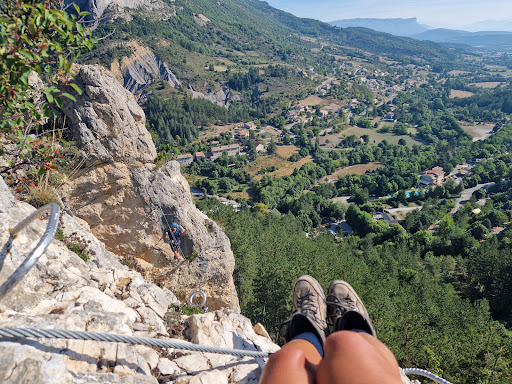 Read moreVia Ferrata récente, avec une belle vue sur le village. La version sportive a du devers par endroits et il y a quelques passages sans prises pour les mains avec un position un peu raide. Ça passe mais ça peut être un peu impressionnant. Pas très longue donc pas très physique. Les deux ponts de singe et népalais sont sympa ! Environ 1h30 marché d'approche et de retour compris en se garant au parking...