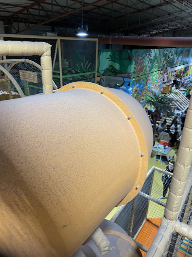 Trampolines, bouncing castle, several soft play climbing frames. Equipment fairly poorly maintained and showing its age, lower safety/maintenance standard than one is used to in the UK but it's one of the only soft play offerings in the region so you get what you get...