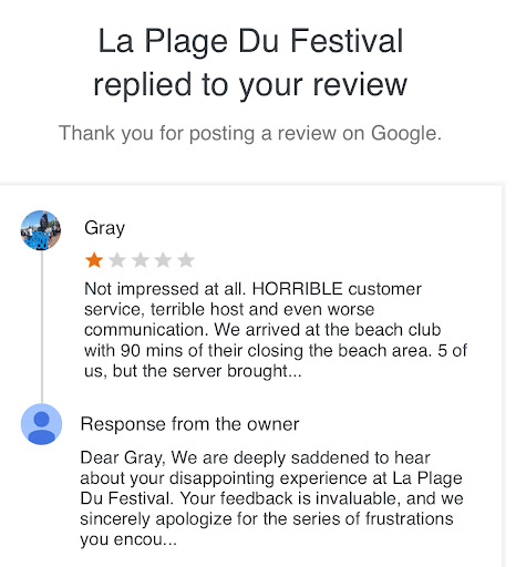 You are happy to take our money and charge us €45 each for the 90 mins (which we didn’t complain about) but didn’t communicate the time restrictions. RUDE and arrogant customer service with inattentive staff. If I could leave a ZERO that wouldn’t even be fitting. There are much better beach clubs on this strip that actually honour their customers like C Beach and La Mome.