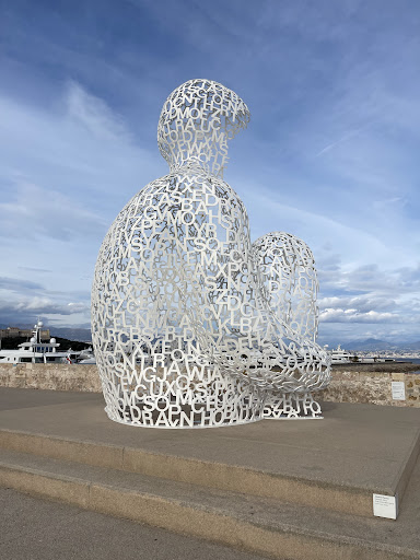 Read moreThis massive sculpture is actually easy to miss when walking around Antibes. You need to walk around the marina and go through some gates to find the stairs to the promenade that encloses above the marina. However, once you are there you will see the massive sculpture representing a man sitting and staring out at the sea. Originally it was only a temporary exhibit but Antibes later bought it from the artist and kept it. The letters that make up the sculpture were meant to represent a language that holds us all together and enable us to construct thought. The sculpture is free to see. There are rarely any lines unless cruise...