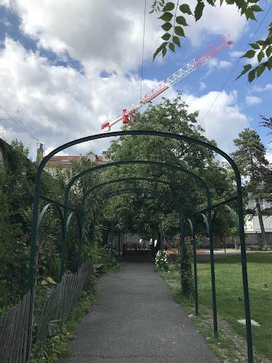 Cet lieu, jardin parc, forme un pénible contraste avec un autre jardin de la Ville, non loin, fleuri, où l'espace en herbe est,,, avec de l'herbe. Impression de lieu bien tenu et accueillant. Bien que dans le même quartier, plus de monde. Et c'est heureusement le cas pour les autres jardins publics...
